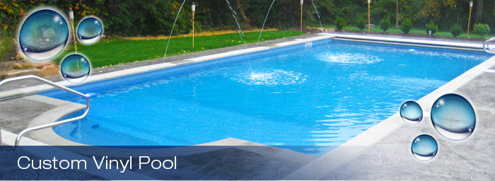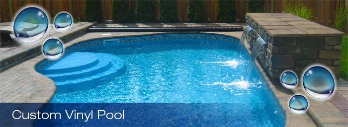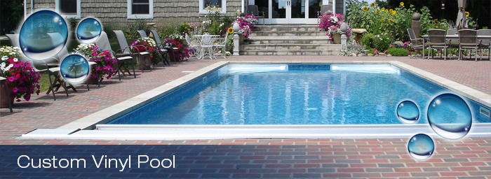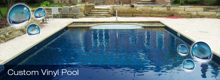 A custom vinyl pool offers unlimited design options, colors, sizes and shapes to fit your lifestyle and your backyard. You also can save on maintenance: vinyl pools don’t have to be repainted or re-plastered. A vinyl liner makes all surfaces of your pool smooth and easy on the feet! Learn more about our Custom Vinyl Pools.